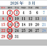 3月の定休日のお知らせ!!